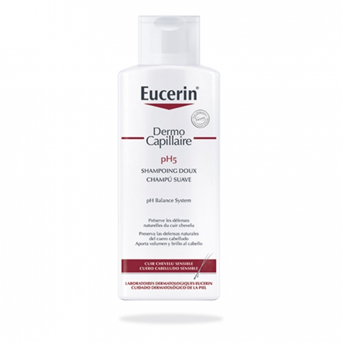 El pH de la piel sana está comprendido entre 4,5 y 5,5, lo que resulta ligeramente ácido. Esta acidez natural protege la piel frente a bacterias nocivas y otras sustancias. Cuando se altera este equilibrio, por ejemplo, debido al calor, el frío, las enfermedades, los cosméticos o el estrés, se puede presentar cuero cabelludo sensible. Eucerin® DermoCapillaire Champú Suave pH5 está diseñado específicamente para mantener el pH natural de la piel y limpiar de manera efectiva el cuero cabelludo y el pelo, previniendo así la sequedad y la irritación. Elimina la suciedad, el polen y los alérgenos, y proporciona al cabello un brillo sano, así como una sensación de suavidad y flexibilidad.