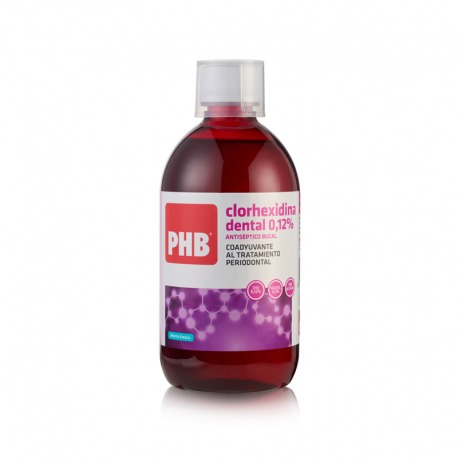 PHB Colutorio Clorhexidina 0.12% 500 ml está formulado con componentes como el Digluconato de Clorhexidina 0,12% y Xilitol 3,3%. Su acción anti-séptica ayuda a tratar la gingivitis y la periodontitis. * Reduce la inflamación gingival. * Combate la placa dental. * Anti-séptico bucal de máxima eficacia y larga sustantividad. Está indicado para una óptima higiene bucal. Agradable sabor. Anti-séptico y anti-caries. Sin alcohol, ni gluten.